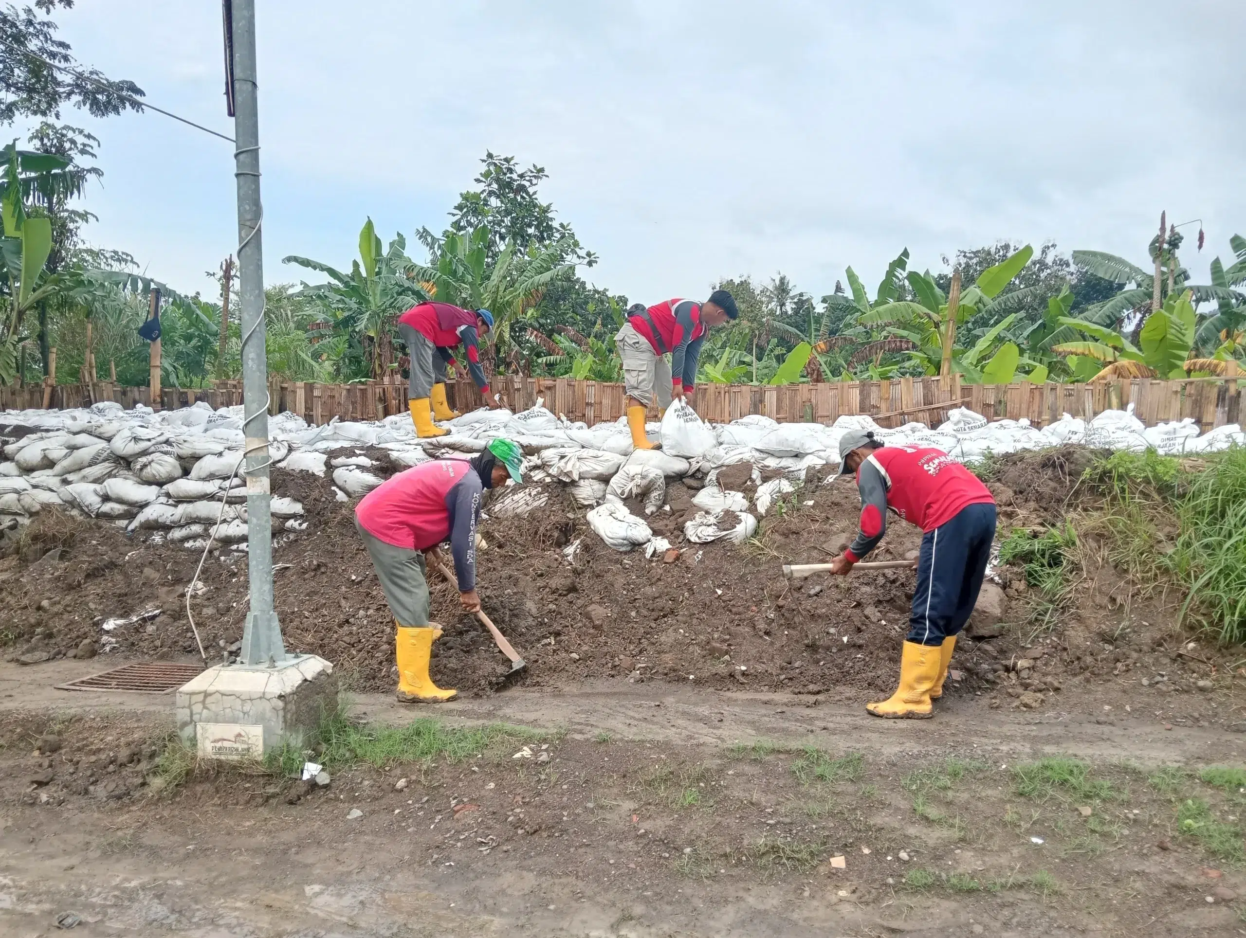Penanganan juga dilakukan melalui pemasangan _sandbag_ dan kisdam sebagai upaya menahan potensi luapan susulan, mengingat intensitas hujan masih berpotensi tinggi.